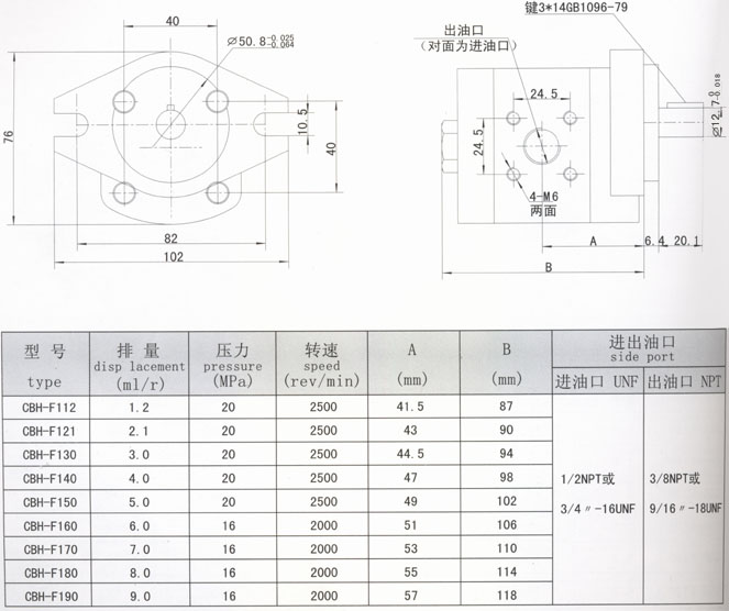 CBH-F100齒輪泵型號說明 CBH-F100 Type Gear Pump |